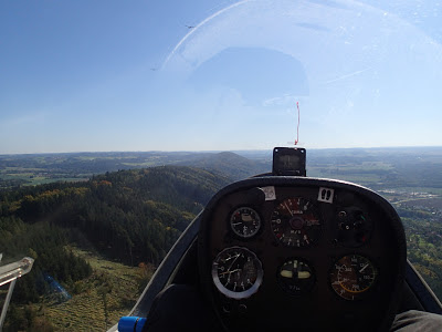 Po kilku dniach lotniczego celibatu piloci nie poddając się czekali co będzie dalej. Zgodnie z przewidywaniami po około 2h termika znowu pracowała. Wystartowałem o 16:08 i bez większych problemów wykręciłem 1000m nad lotnisko (w połowie października!). Razem z Ka-7 pozwiedzałem trochę okolicę i po 50 minutach stałem już pod hangarem zadowolony z kolejnego lotnego dnia.